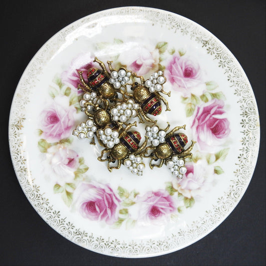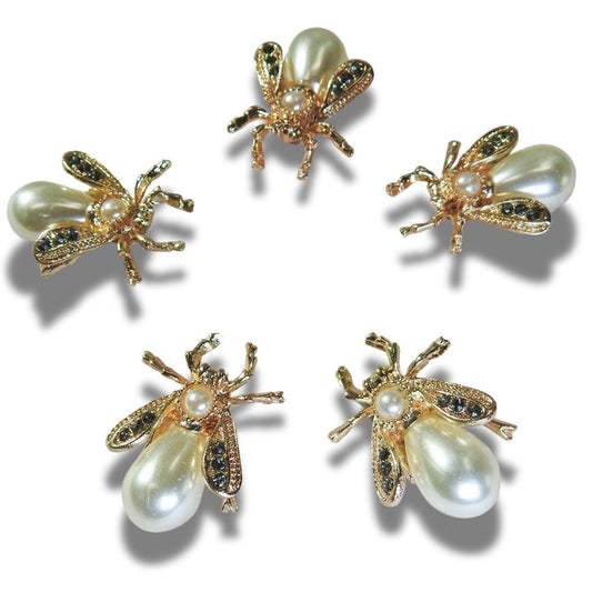 Set of 5 Pearl Bee Buttons – Gold White Insect shaped