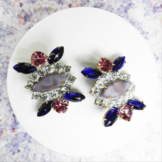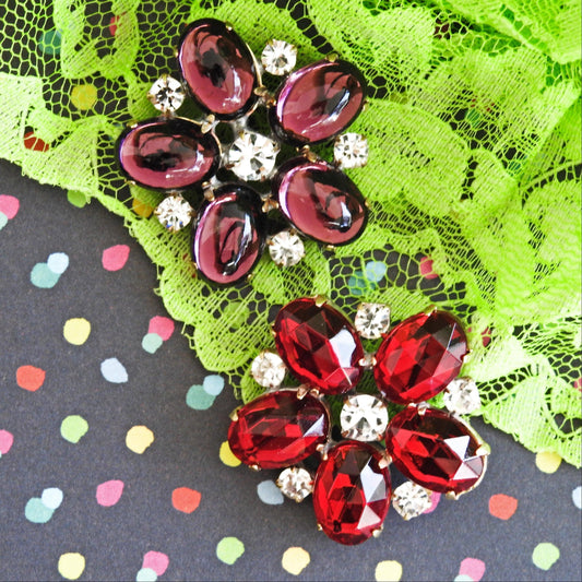 Large Czech glass shank buttons jewels for sewing with purple blue glowing crystal rhinestones for button bouquet designers & jewelry makers