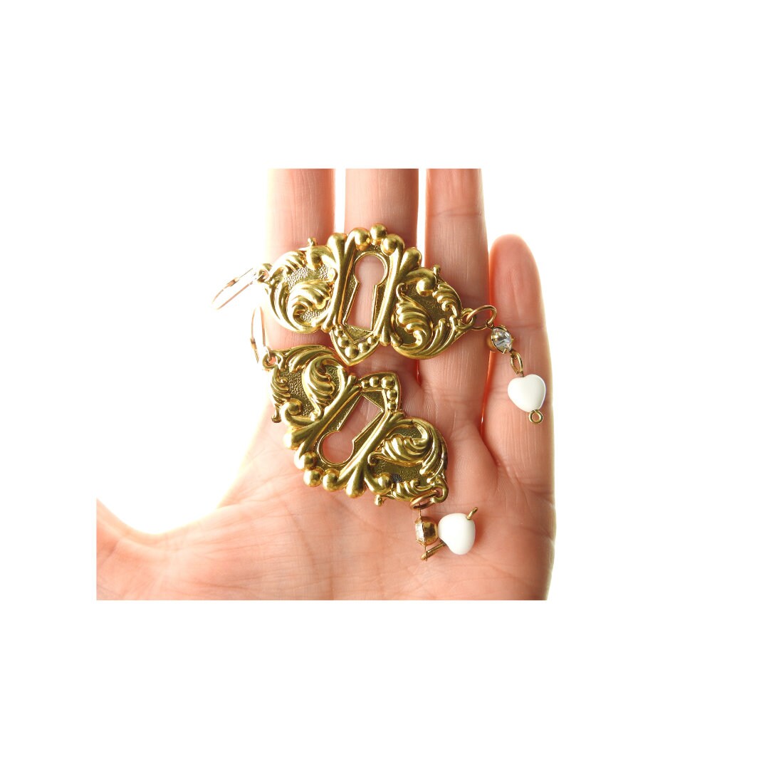 Discover the timeless charm of these antique keyhole chandelier earrings.
