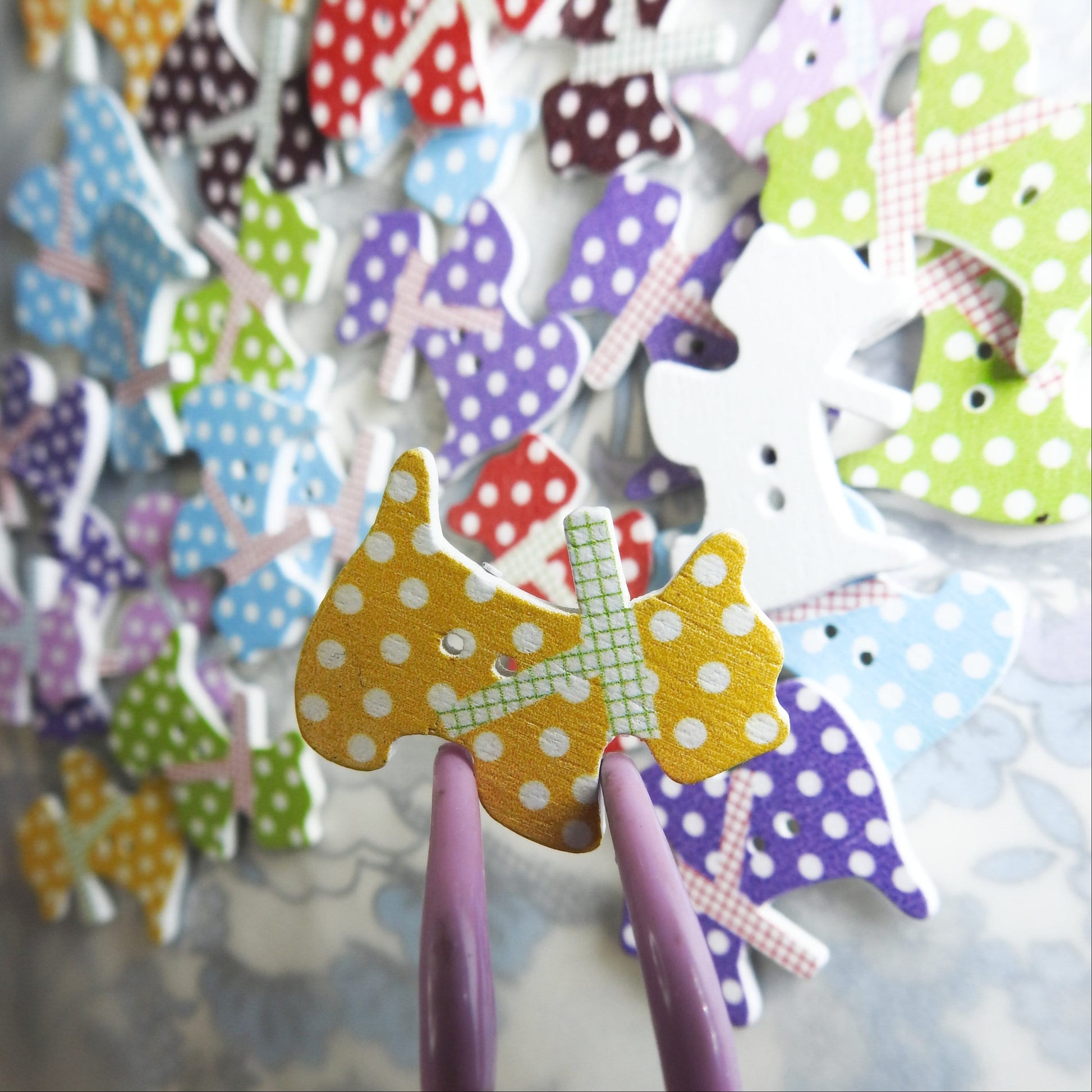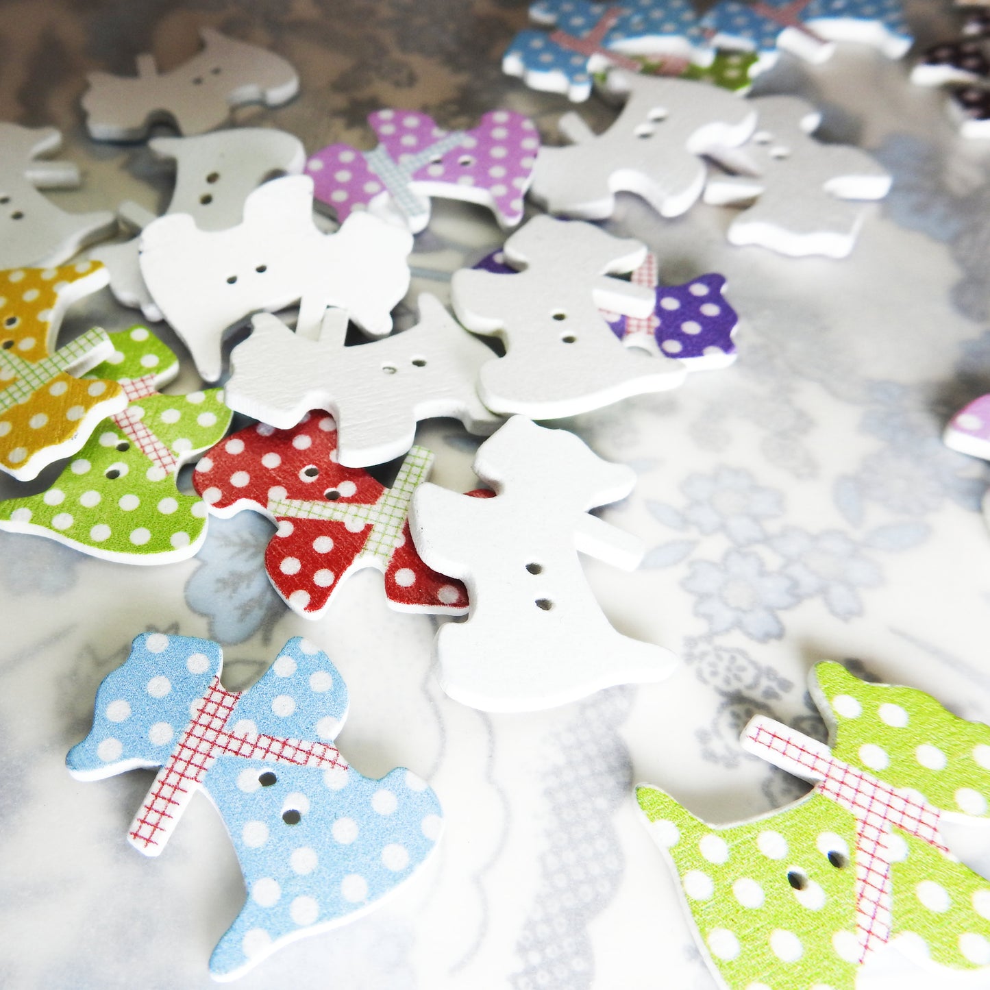 Looking for a fun twist for your craft projects? Meet these fun wood buttons scottie dog shaped – a colorful collection of hand-painted wood buttons that bring a big dose of cuteness wherever they go!
