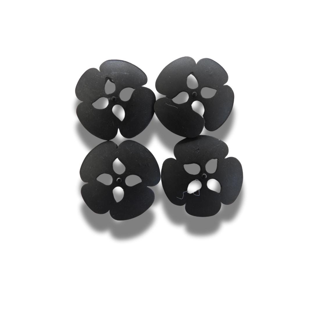 Matte black metal flower-shaped buttons – Want a button that’s anything but ordinary? These unique flower buttons bring serious style and are made to get noticed.