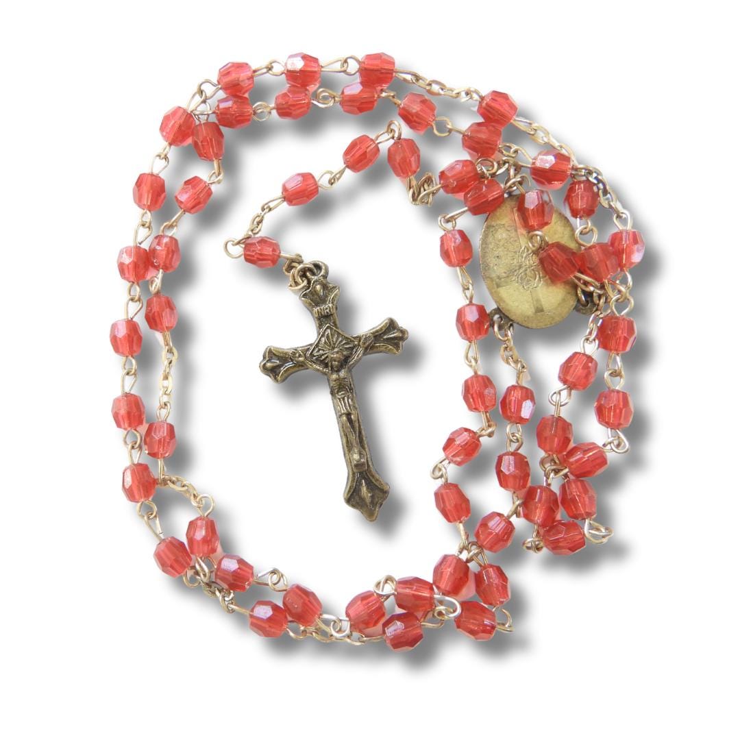 Elegant Beaded Rosary Chain Necklace in Ruby Red—a Gothic-inspired lariat featuring cute faceted beads. Perfect as a meaningful Christian gift, this religious jewelry piece is ideal for Mother's Day, baptisms, confirmations, or Easter. This beautiful beaded rosary chain jewelry is a beautiful way to celebrate faith and love!