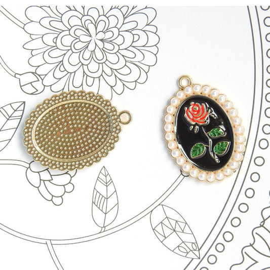 Roses enameled Metal Charms with Pearls