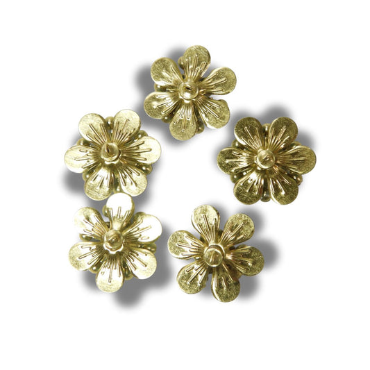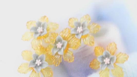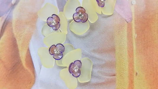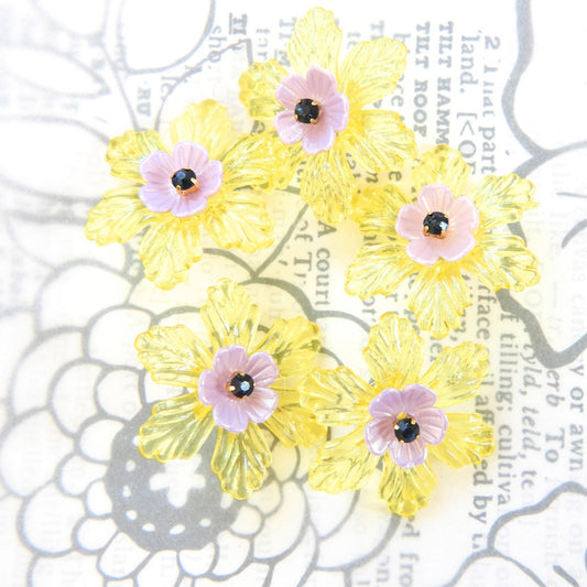 Set of 5 Fancy Flower Buttons in Purple & Lemon Yellow – 30 mm
