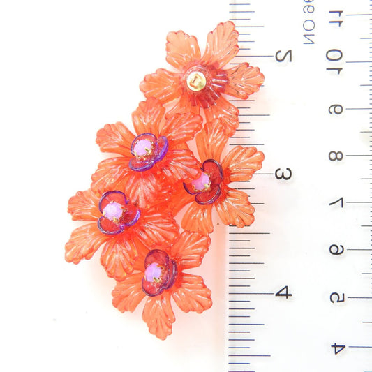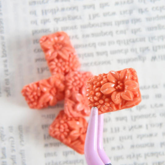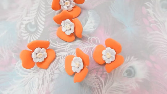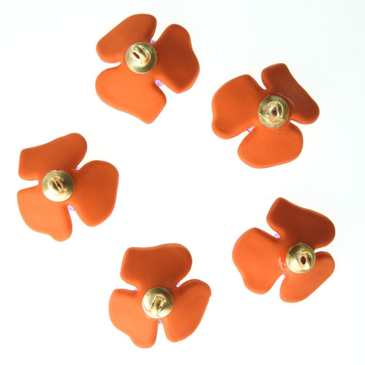Large Orangy Red Floral Buttons- 30mm, Set of 5