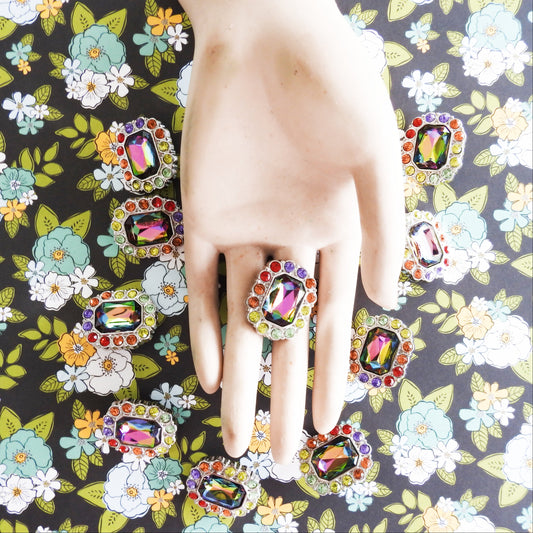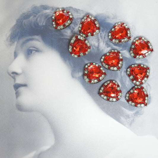 Set of 10 Large Red Rhinestone buttond (30mm)