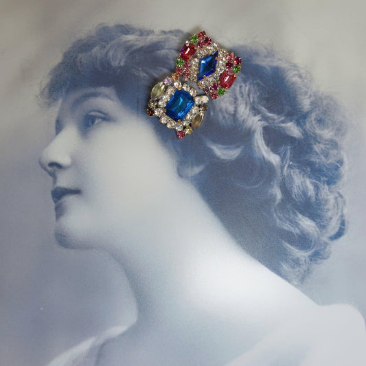 Large Bow Tie Czech Glass Buttons – Set of 7 in White, Blue & Pink with Crystals