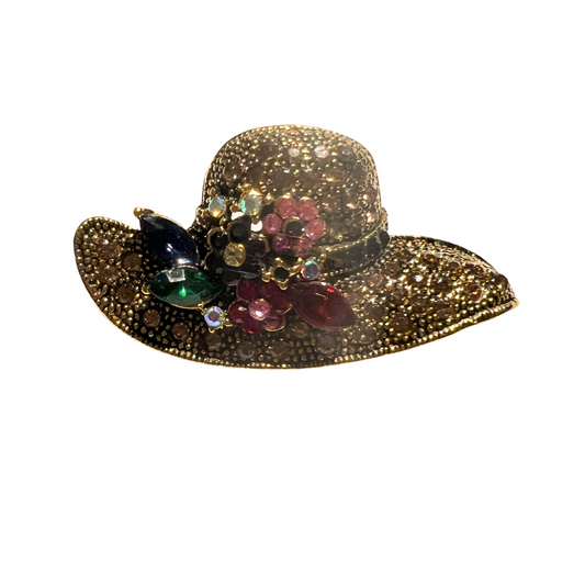 Small rhinestone brooch shaped like a hat