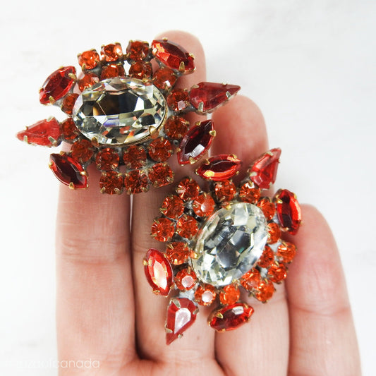 Sparkly large rhinestone buttons - Blue and Red