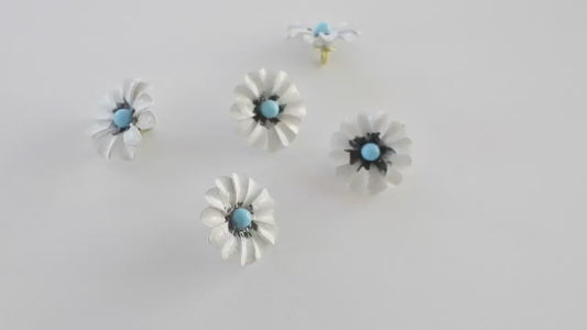White flower-shaped buttons with a shank