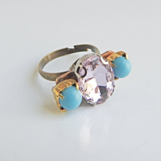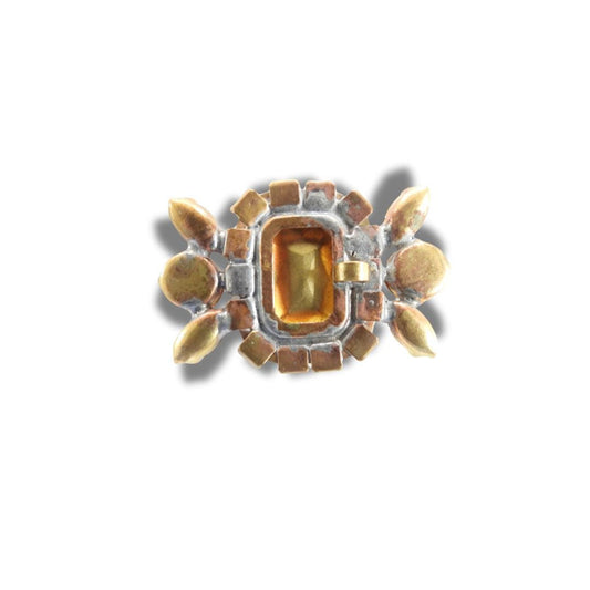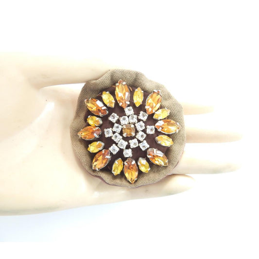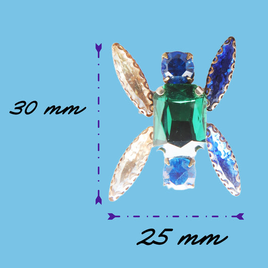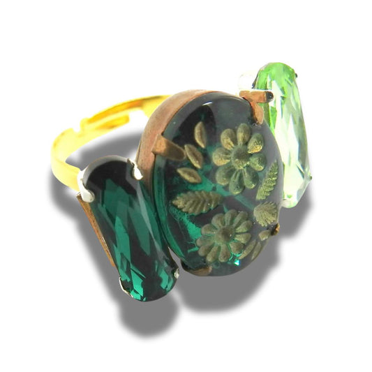 Large Czech Glass Button with Red Cabochon with Green Stones