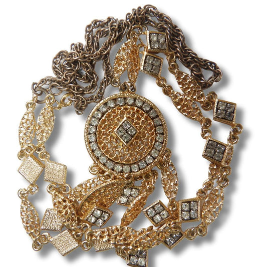 Chain necklace with Disc Charm pendant - Vintage Lariat jewelry