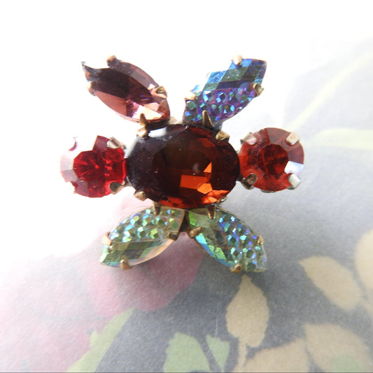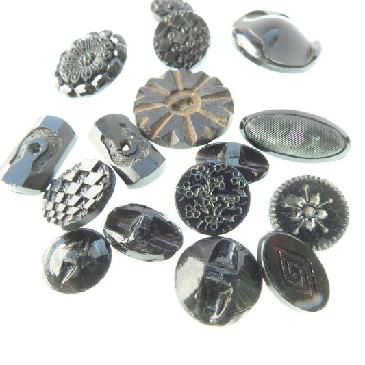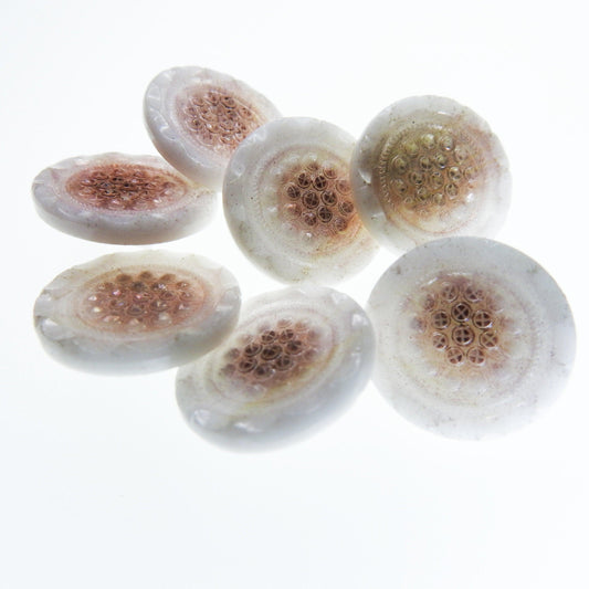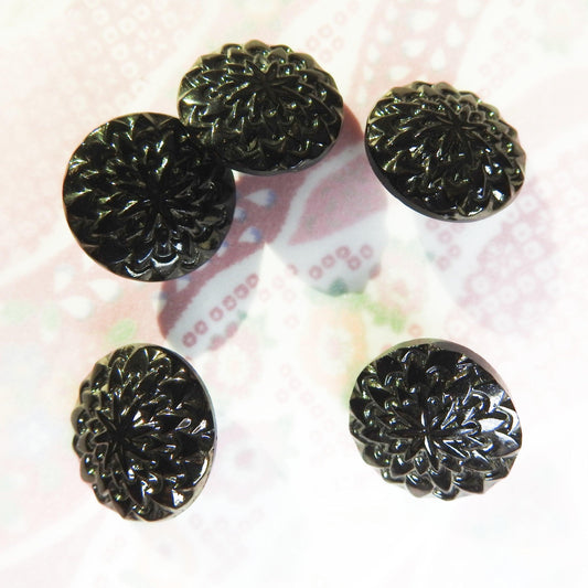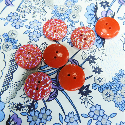 Vintage Czech Glass Buttons – 15mm Red Shimmery Textured Sewing Embellishments (Set of 7)