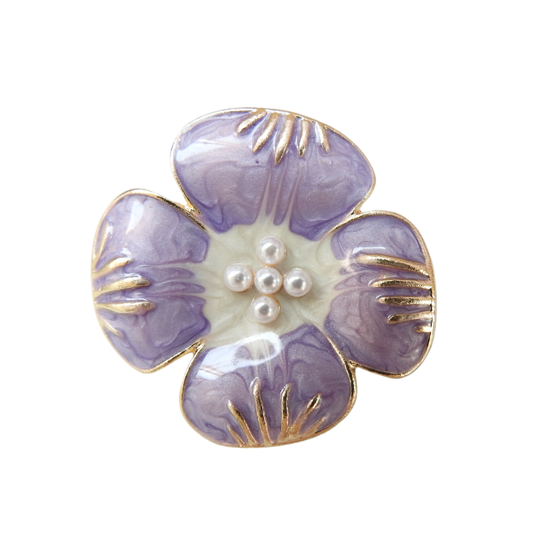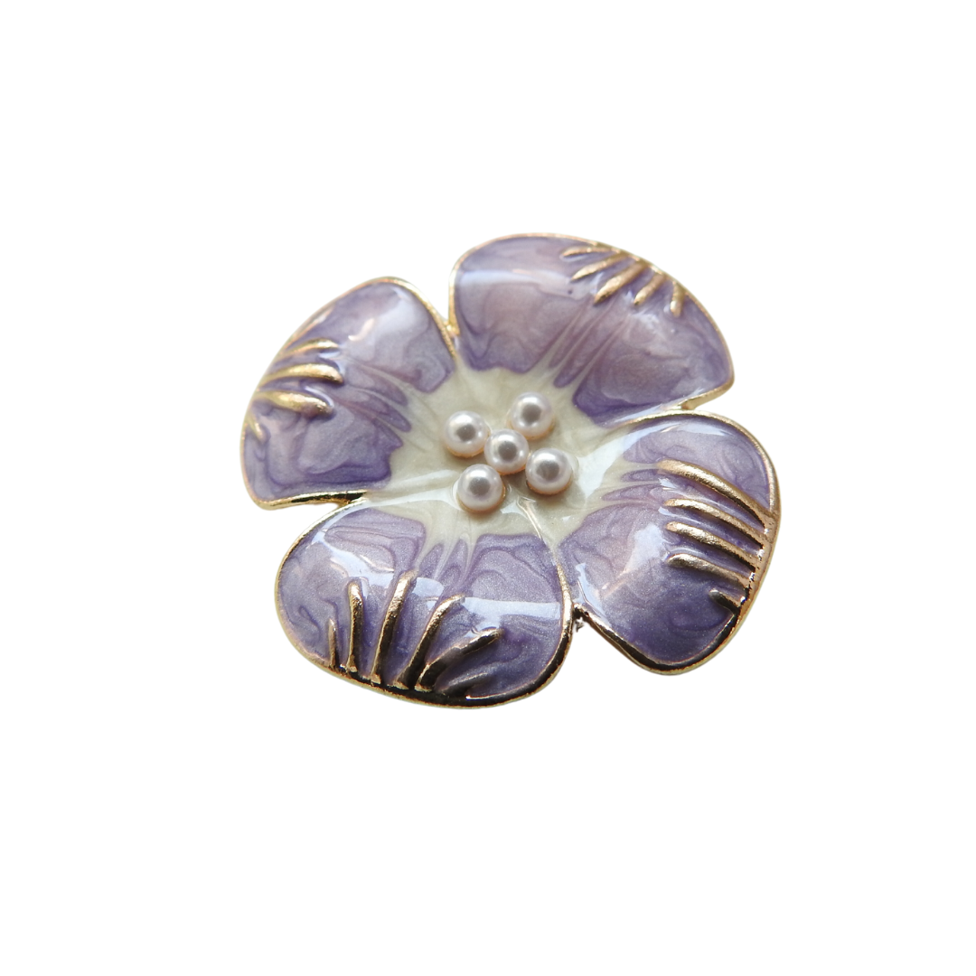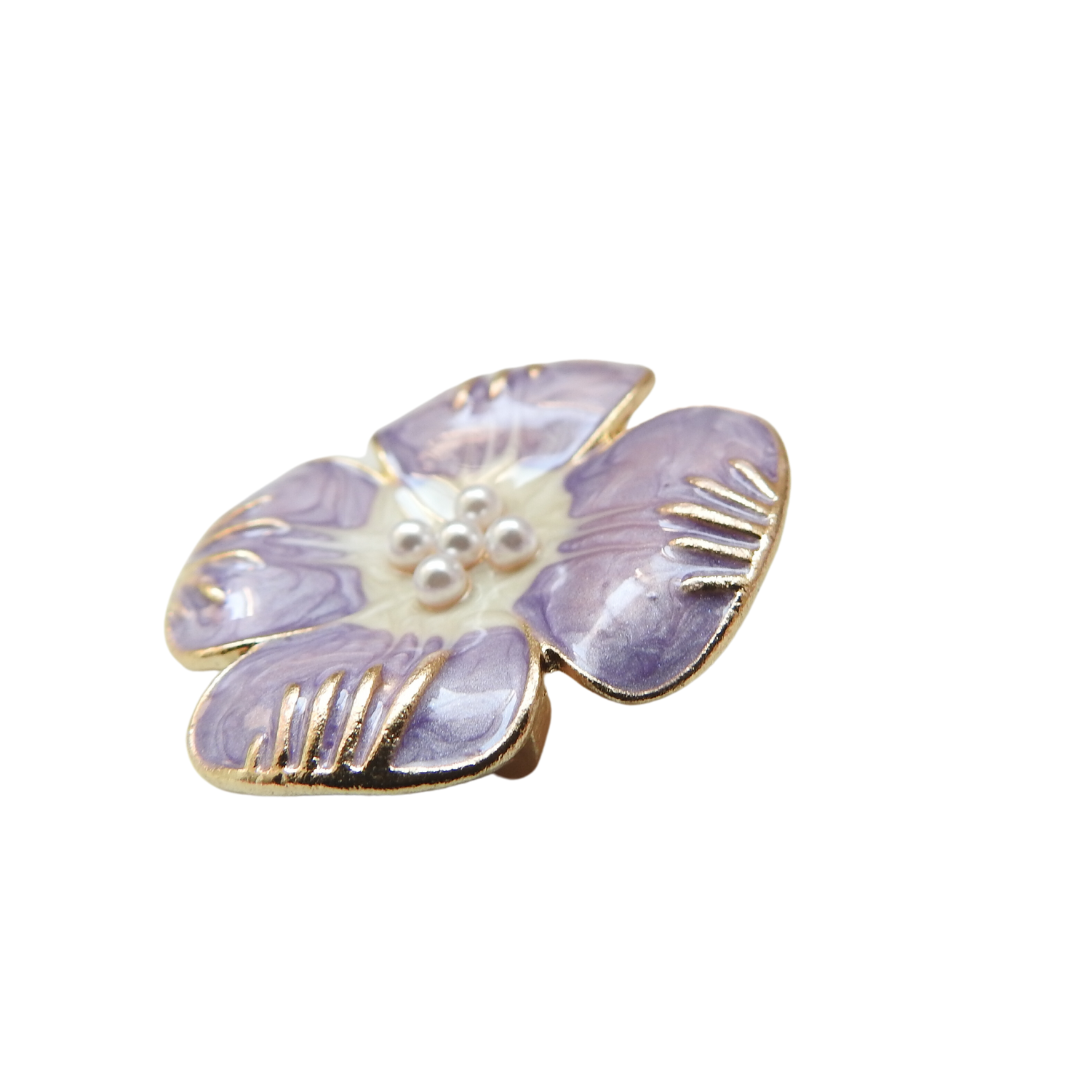 What's great about this charming brooch is that it's perfect for a summer outfit, but its purple color also suits the fall and winter seasons. It will add a lovely retro touch to a white dress and a refreshing floral accent to a winter coat. This brooch is not too heavy so you can stick or clip it onto a hair accessory.