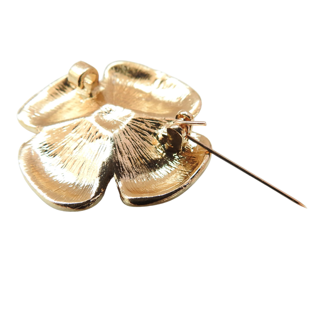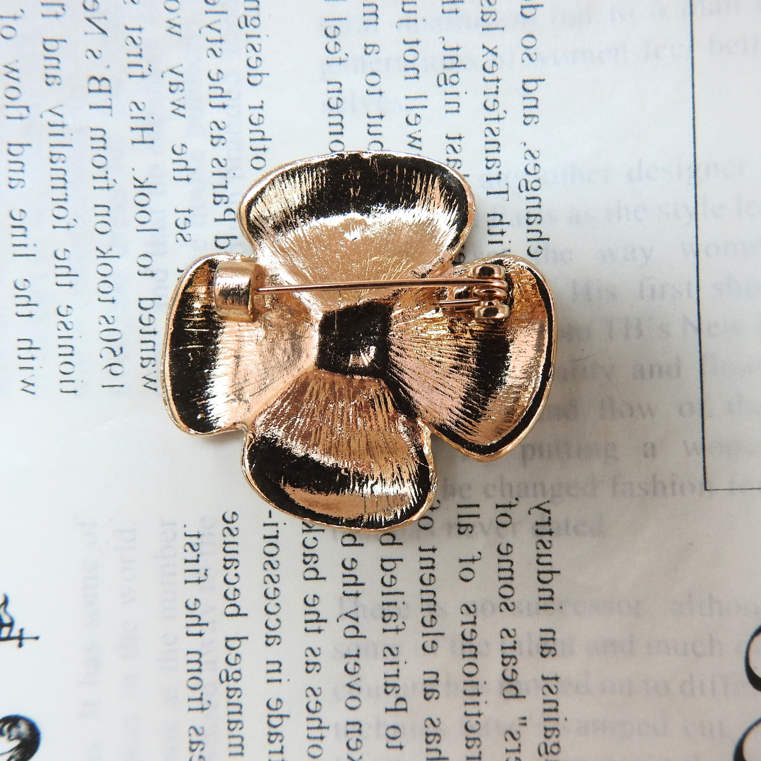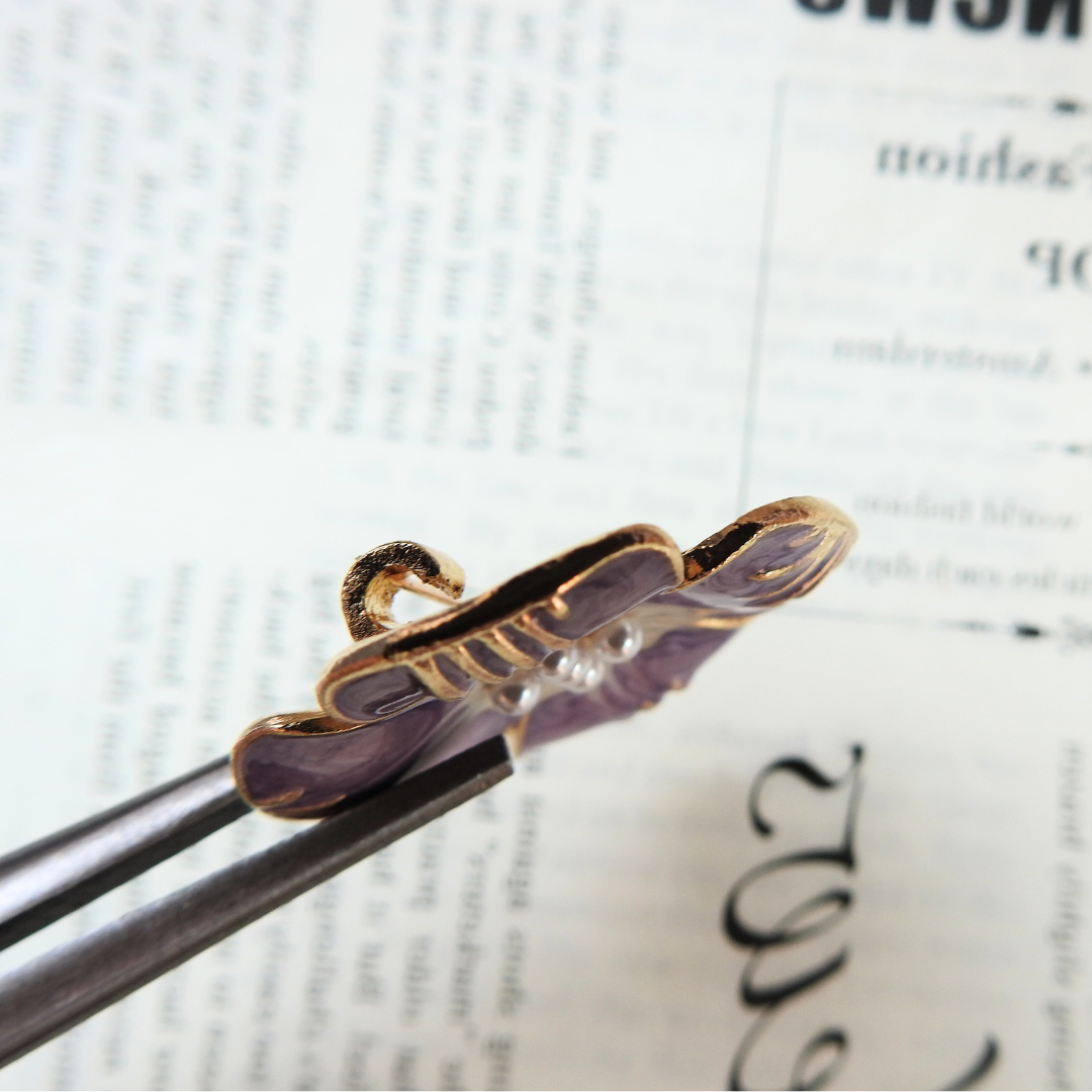 What's great about this charming brooch is that it's perfect for a summer outfit, but its purple color also suits the fall and winter seasons. It will add a lovely retro touch to a white dress and a refreshing floral accent to a winter coat. This brooch is not too heavy so you can stick or clip it onto a hair accessory.